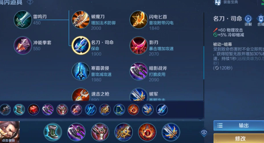 光有输出还不够,毕竟你是个要冲进人堆里的战士。所以后面两件装备要兼顾一下生存和持续作战能力。一件可以是不死鸟之眼,这件装备能大大增强曹操大招的吸血回复效果,让他开大期间的回血量更夸张,化身打不死的永动机。最后一件装备可以在名刀·司命和贤者的庇护之间选择,名刀能让你在致命伤时活下来,而复活甲则提供一次重新站起来的机会,这都能极大地提升你的容错率。