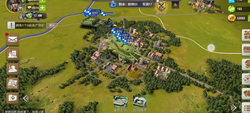 建城后的资源管理策略需要立刻调整。系统初始给的资源比例可能并不合理,你可以根据自己的战略进行微调。比如有攻略前期为了快速爆兵和造军工厂,钢铁和石油的消耗会非常大,因此可以考虑按照粮食、钢铁、石油、稀矿1:3:2:2的比例来分配资源区的建设,重点保障军工生产的原料供应。城市的税率不宜设置得太高,维持在30%到40%左右比较稳妥,过高的税率会导致民心快速下降,进而影响人口的增长速度。别忘了每天派遣军官去占领的野地采集珠宝等特殊资源,这些是提升军衔、解锁更多城市槽位的重要物资。