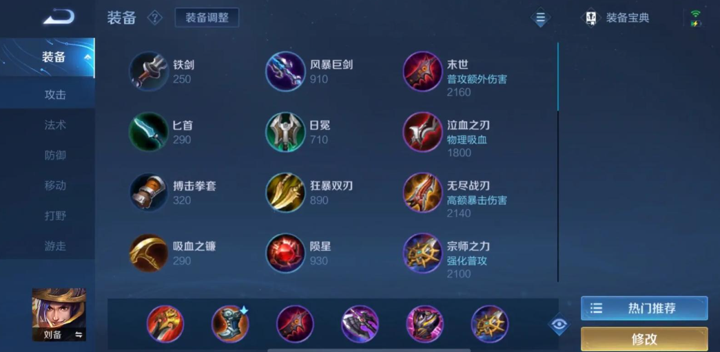 一套典型的秒人出装从打野装备开始,首选追击刀锋或贪婪之噬来增加攻速和清野效率。接着搭配急速战靴进一步提升机动性和攻击频率。中期核心装备包括暗影战斧,它提供冷却缩减和物理穿透,让刘备能快速清理敌方后排;宗师之力则强化技能后的普攻伤害,并提升移速;后期补上破军以强化收割效果,并对低血量敌人造成额外伤害。最后一件装备可根据局势选择名刀·司命或贤者的庇护来增加容错率,确保在秒人后能安全撤离或继续作战。
