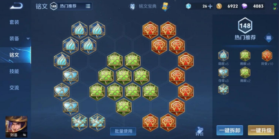 铭文选择对刘备的秒人效果至关重要,推荐使用异变、鹰眼和狩猎或夺萃的组合。异变和鹰眼提供高额物理攻击和穿透,使刘备在前期就能打出压制效果;狩猎则增加攻速和移速,便于贴近敌人打出爆发,而夺萃能提供物理吸血,增强续航能力。这种铭文组合能确保刘备在游戏初期就具备高伤害,快速建立优势。