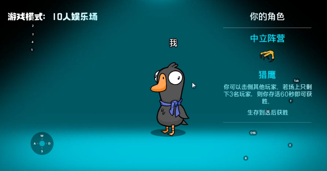 猎鹰是一个特殊且关键的中立阵营角色,其核心玩法与获胜条件完全独立于鹅和鸭子两大阵营。猎鹰玩家的根本目标是生存至游戏的最后阶段。猎鹰拥有主动击杀其他玩家的能力,这一能力使其成为对局中一个不稳定的变量,能够直接影响游戏进程。作为中立角色,猎鹰不必为任何一方服务,它的存在本身就构成了对双方阵营的直接威胁,玩家需要通过策略性行动来隐藏自己,积累后期胜势。