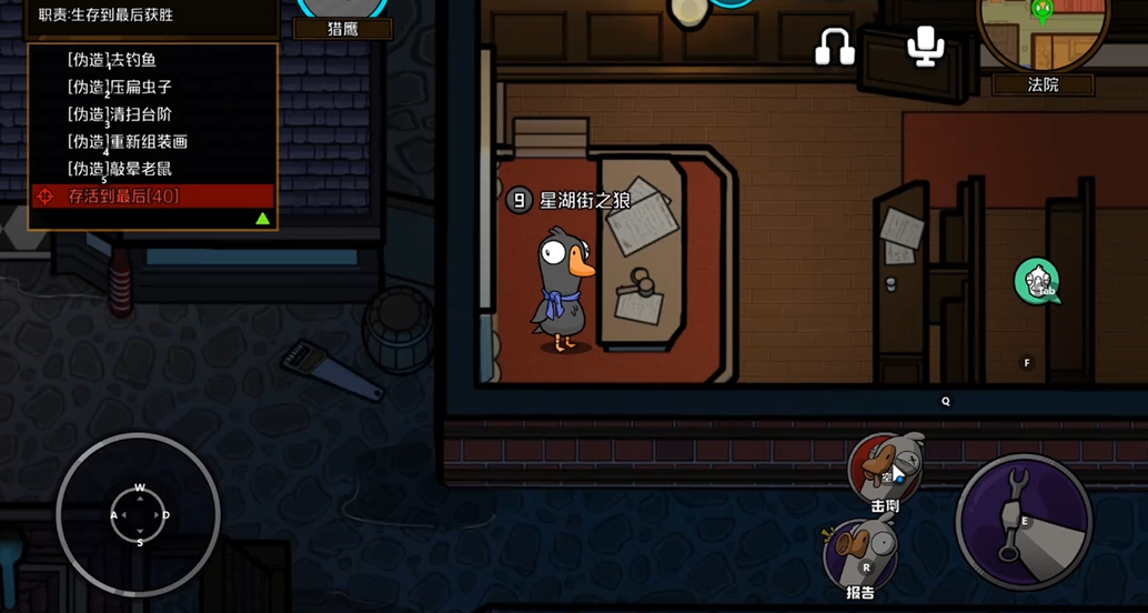 猎鹰最重要的特性在于,它的存活会彻底改变鹅阵营和鸭子阵营的基础获胜逻辑。当猎鹰在场时,鸭子阵营无法通过常规的击杀所有鹅来获胜,而必须转向依赖地图中的破坏任务来取胜;相应地,鹅阵营也无法通过投票淘汰所有鸭子而轻松获胜,完成任务成为了它们主要的获胜途径。这一规则意味着,只要猎鹰不死,游戏就会持续进行,无论哪一方阵营在人数上占优,都无法立刻宣告胜利,这使得猎鹰成为了游戏中一个至关重要的平衡角色。