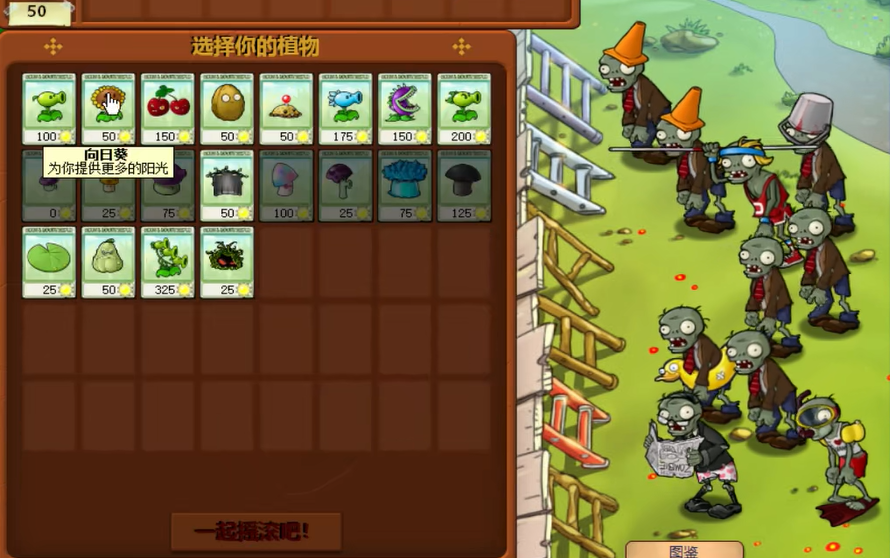 游戏开始后,你需要迅速在陆地的安全后排位置种植向日葵以建立阳光经济。由于墓碑很快就会出现并可能刷出僵尸,前期的火力部署不能犹豫,建议在僵尸出现频率较高的路线上尽早种下双发射手或寒冰射手。水面区域同样不能忽视,尽快在靠后的水格上铺设荷叶,并视情况将攻击植物延伸过去。