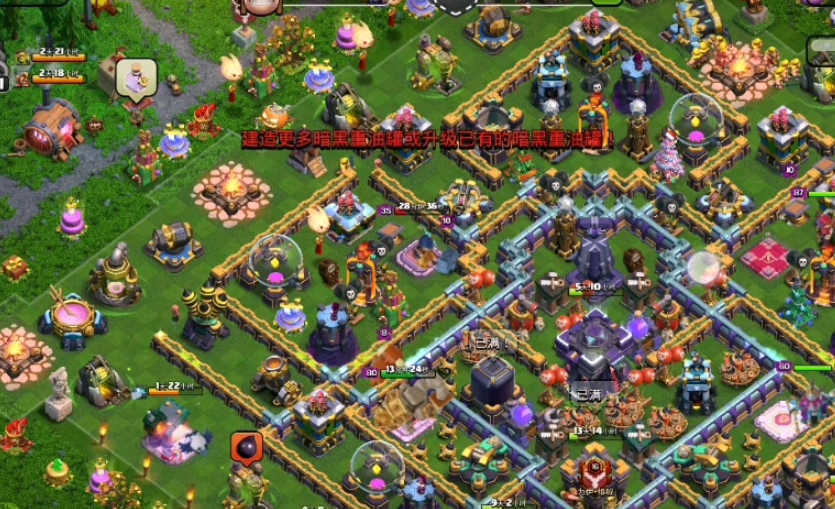 另一个基础且灵活的消耗途径是通过暗黑训练营训练部队以及暗黑法术工厂配置法术。训练由黑油驱动的暗黑部队,如女巫、石头人、戈仑冰人等,是日常进攻和防守的常规消耗。配置诸如毒药法术、地震法术、急速法术等暗黑法术,同样需要花费黑油。你可以通过增加训练这些兵种和法术的频率,或者尝试搭配一些以暗黑兵种为核心的进攻流派,在日常搜刮资源和对战中自然而然地消耗黑油,同时磨练不同的战术打法。