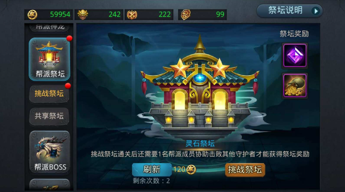 积极参与帮派活动也能提供获取凌云壁的机会。加入一个活跃的帮派后,可以挑战帮派祭坛任务,该任务有几率刷出凌云壁作为奖励,玩家可以使用帮派贡献刷新奖励内容。在帮派祭坛的共享祭坛界面,协助其他帮派成员完成他们刷出的、含有凌云壁奖励的祭坛挑战,每次协助成功也可获得1枚凌云壁,这要求玩家保持一定的帮派活跃度。