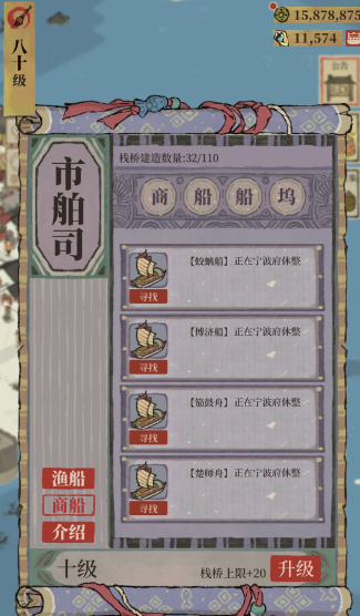 新船只的具体解锁条件与你的码头等级直接相关。当你的码头达到3级之后,系统便会自动解锁新的船只。操作的第一步通常是修复起始城市应天府的废弃码头,你可以在应天府界面最下方找到废弃码头的选项,点击后投入资源进行修复。修复成功后,你便能够乘船,携带基础资源与特殊居民前往其他已解锁的城市,这标志着城市间航运系统的正式开启。