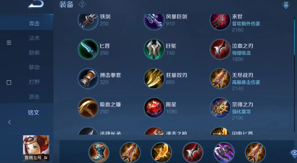 抽血流鲁班七号的核心出装推荐为,极速战靴、影刃、无尽战刃、泣血之刃、破晓、破军,对应的铭文搭配是10祸源、6狩猎、4夺萃、10鹰眼。这套组合的构建思路是通过高额物理吸血来显著增强鲁班的持续作战与生存能力,同时依靠暴击和攻速装备来保证其被动扫射的输出效率。开局通常优先购买匕首提升攻速,首件大装备选择影刃或末世来增强前期作战能力。中期补足无尽战刃和泣血之刃形成输出与吸血核心,后期则用破晓和破军来强化穿透与收割能力。整个出装顺序需要根据实际对局节奏进行灵活调整,例如面对控制较多的阵容时,可以将极速战靴替换为抵抗之靴。