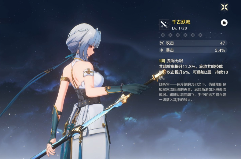 千古洑流作为迅刀类五星自选首选,主属性为攻击,副词条携带暴击率,同时提供共鸣效率加成,技能命中后还能叠加攻击力,适配漂泊者、秧秧、丹瑾、散华、长离、椿等绝大多数迅刀角色,没有专属武器时可作为毕业配置,无论是站场输出还是速切循环都能稳定提升伤害,暴击词条的存在能大幅降低声骸搭配压力,让输出面板更快成型,在副本与深渊玩法中表现稳定,是泛用性拉满的核心选择。