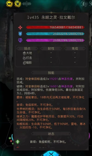 30层BOSS木妖莫里是前期主要难点,技能可回复10%生命值,溢出治疗80%转化为护甲,还附带暴击与回避属性。战斗前存满4豆,开局暗鸦直接释放麻痹技能控住BOSS,枯萎之心持续释放减疗技能,黎明骑士及时净化BOSS的护甲增益,输出角色集中火力快速压血,避免BOSS叠加多层护甲导致刮痧。若输出不足,可让守望者、守林人补充控制,延长BOSS被控时间,配合战吼爆发快速击破,防止陷入持久战被持续回血压制。