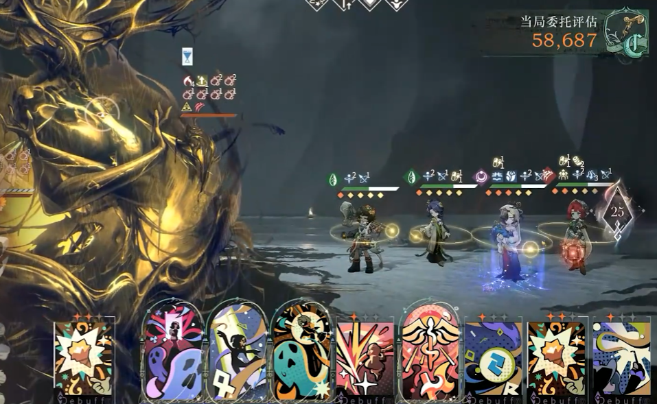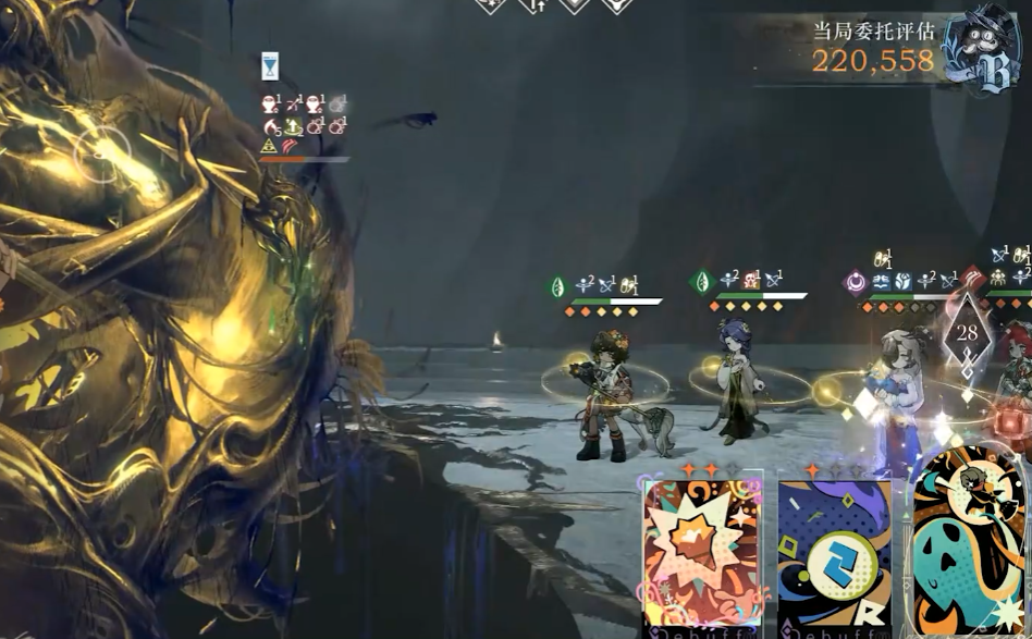 战斗中助战角色以第四人身份登场,血量、激情、技能伤害与效果完全继承出借方的培养状态,包括共鸣等级、心相配置、塑造等级,无需玩家投入任何资源即可发挥完整战力。助战角色拥有独立的咒语卡牌与仪式大招,操作方式与自有角色一致,可手动选择出牌、释放仪式,也能在自动战斗中按逻辑自主释放技能。部分特殊关卡中,助战角色是通关核心,例如特定BOSS需助战大招完成击杀,或需助战技能驱散BOSS锁血、负面效果,此时要优先规划助战角色的卡牌顺序与大招释放时机,保证关键技能精准触发。