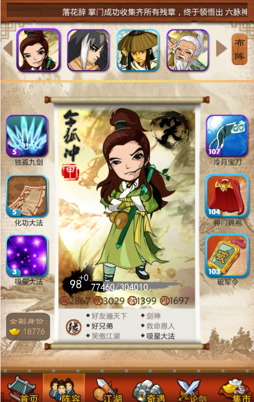 17级也是江湖关卡推进的关键阶段,可挑战聚贤庄、梅花山庄等高难度关卡,获取三倍银两与威望奖励。推进时无需盲目追求三星,能通关即可,避免因卡关浪费体力。日常需合理分配体力,优先刷取掉落核心装备、武功残章的关卡,同时积累江湖指点,用于提升弟子等级。弟子等级需同步跟上掌门等级,主力弟子等级尽量接近掌门等级的三倍,保证输出与防御达标。培养时优先丹培养主力,侧重攻击与防御属性,内力按需分配,让弟子属性契合阵容定位。