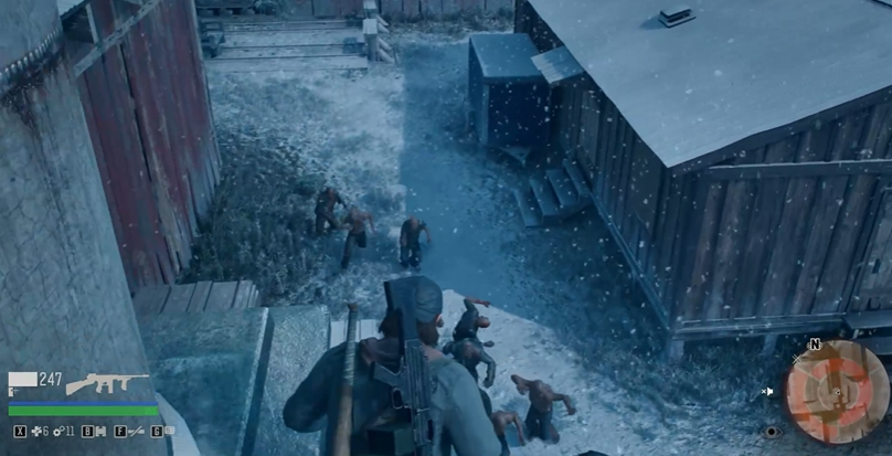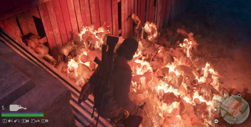 寻找暴走潮时需注意环境中的警报喇叭,这些装置分布在锯木厂外围围栏和建筑物顶部,约五至六个。未清除喇叭前触发战斗会吸引额外丧尸增援,建议优先用远程武器破坏。暴走潮核心聚集点位于锯木厂西北侧的木材堆放区,该处有可互动的绳索机关,切断后能制造障碍物阻挡尸群移动路径。东南方向铁路隧道是重要的战术撤离点,暴走潮追击至隧道中段时会主动折返。