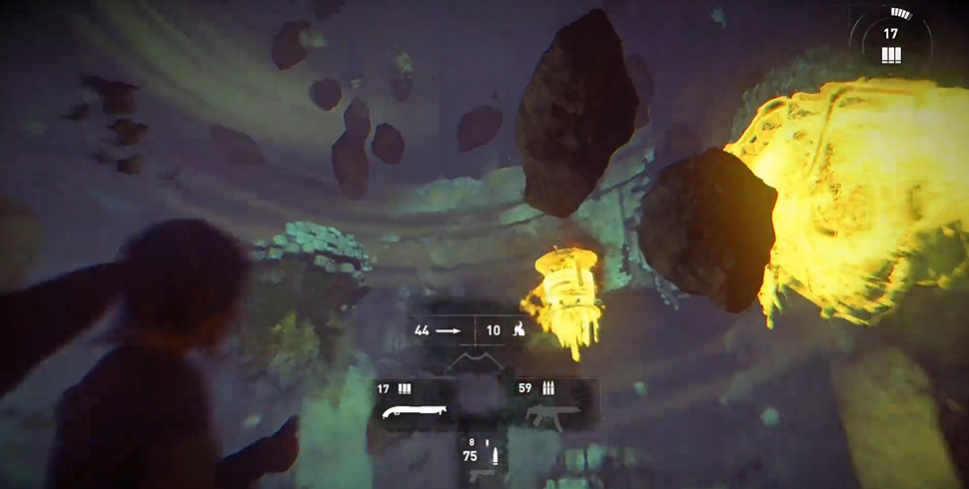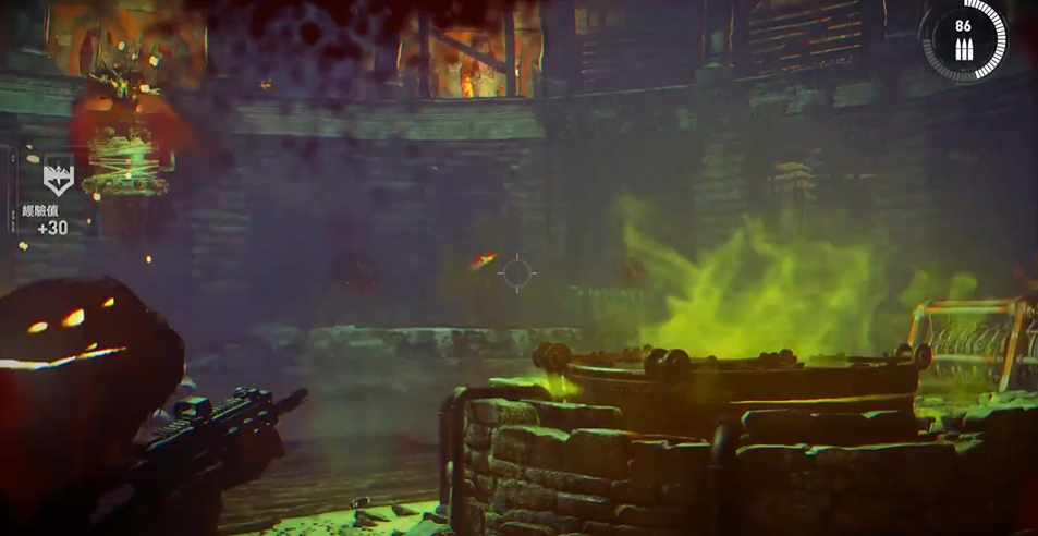 启动拉杆后,转轴会把女巫往矿井上方拉,这时候要特别注意她会试图切断绳子。看到她探出头就要赶紧射击篮子,迫使她躲回去。等篮子被拉到矿井正上方时,快速拉动机关引爆矿井。这样就能对女巫造成大量伤害。同样的操作需要在场景中不同的矿井位置重复几次。
