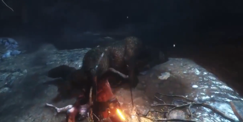 第一次遇到大熊时,咱们只能选择逃跑,千万别硬刚。这时候会触发QTE机制,注意屏幕上会出现一个缩小的白圈,按键时机要准,不能太快也不能太慢。逃跑时记得按住冲刺键,沿着黑色路径跑,别踩到雪地,否则速度会变慢。跑到树干尽头时一定要跳起来,接着往前冲,最后躲进树根笼子里短暂周旋,等熊攻破笼子后,抓住机会从悬崖跳下去就能脱险。