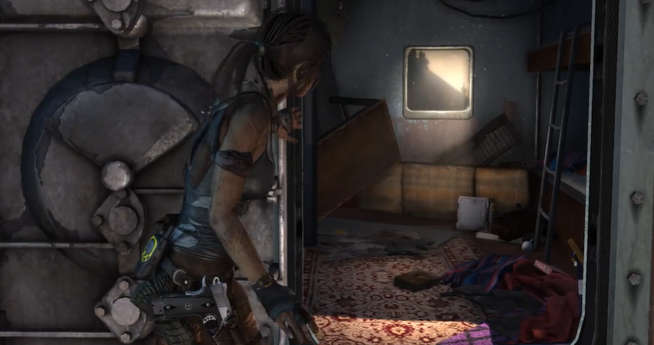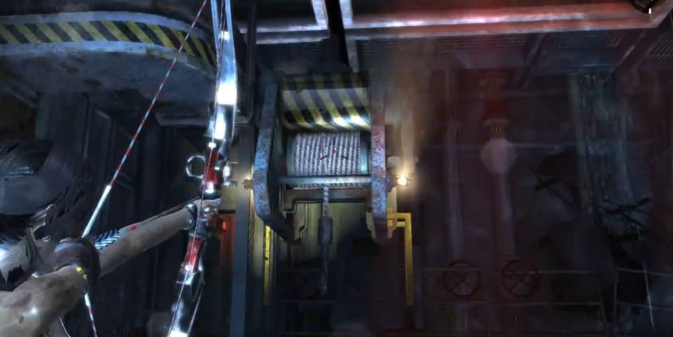 解救艾利克斯的关键在于操作场景中的吊机系统。艾利克斯被困在船上的一个仓房内,门口被带电电缆阻挡,玩家需要通过吊机破坏电缆才能进入。首先利用绳索箭矢拉动吊机,使其沿天花板导轨移动。当吊机被钢管卡住时,需爬上二层平台清除障碍物。这一步骤需要观察天花板结构,找准移动路径才能推进解谜进程。