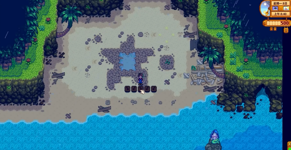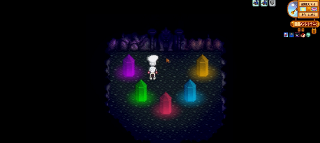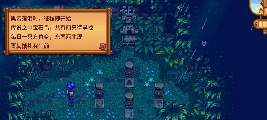 火山地牢内部也藏有金核桃,通过采矿、击败特定怪物、操作火山内的小型装置以及开启宝箱均可收集。姜岛西部区域在支付金核桃解锁后,提供了更丰富的收集点:除常规探索挖掘外,还包括采集蚌类、完成海盗妻子系列任务链、击败老虎史莱姆、解开五彩水晶谜题、完成青蛙美食家任务以及收获种植的农作物。青蛙美食家任务要求玩家在农场右侧矿洞接受委托,在姜岛农场种植甜瓜、小麦和大蒜各一份并保持成熟状态不收获。岛屿南部区域的金核桃则需通过探索、特定位置垂钓、雨天解密美人鱼长笛块谜题等方式获取。