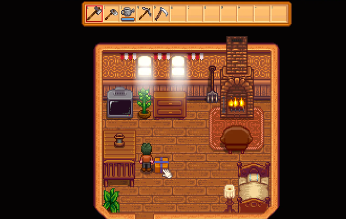 灶台是厨房的核心设施,用于烹饪各种食物以恢复体力或提供增益效果。制作灶台需要准备50块石头和10根木头,这些材料可通过挖掘石头和砍伐树木获得,建议在游戏初期就开始收集。灶台必须建造在农舍内部,因此需要先确保房屋已升级至包含厨房的版本,首次房屋升级需消耗10000金币和450木材。灶台制作完成后将永久固定在厨房区域,无法移动或拆除,因此在放置前需规划好位置。