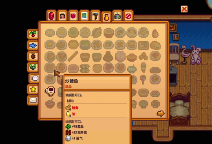 获得灶台后,烹饪功能即可解锁,但需注意烹饪的前提是掌握相应食谱。食谱主要通过观看每周三的电视节目酱料女皇随机获取,此外提升与村民好感度或完成特定事件也能解锁部分食谱。每个食谱会明确标注所需食材,包括种类和数量,食材必须提前放入厨房的冰箱或随身携带。若食材不足,对应食谱会显示为灰色不可用状态。烹饪过程只需点击灶台打开界面,选择彩色图标的可用食谱即可自动完成,制作好的食物会直接进入背包。