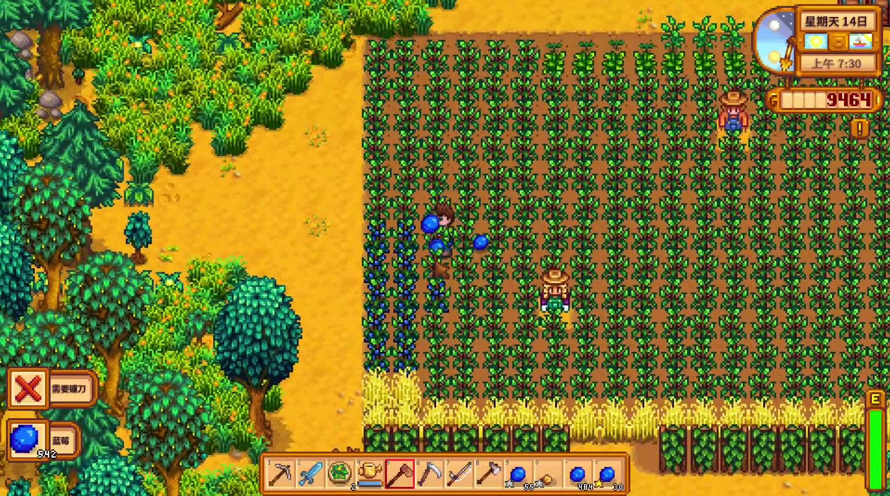 蓝莓是最具经济效益的选择。蓝莓种子价格为80g,生长期13天,首次收获后每4天可再次收获,每次通常产出2-3颗果实。这种持续收获机制使其成为夏季稳定收入来源,尤其适合大面积种植。虽然初期投入较高,但长期收益显著高于多数夏季作物,且无需重复播种节省时间成本。