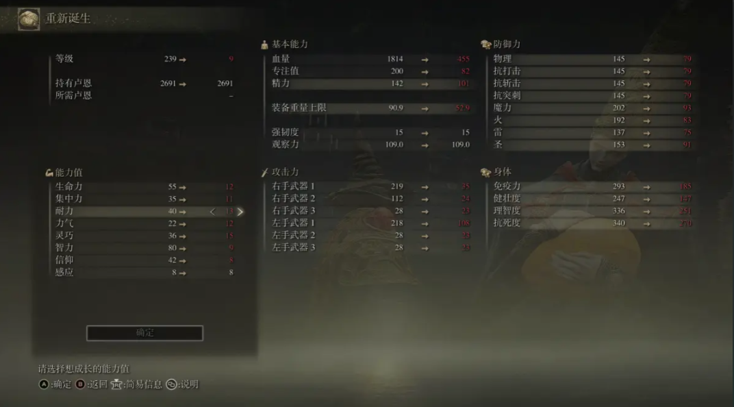 如果想降低等级重新分配属性点,最直接的方法是找到满月女王进行重新诞生操作。这需要提前准备好道具泪滴幼体,然后前往魔法学院的大书库,与坐在中间的满月女王对话,选择重新诞生即可完成洗点。洗点后所有属性点会重置,可以自由分配,但不会返还升级消耗的卢恩,相当于从当前等级降回初始状态。