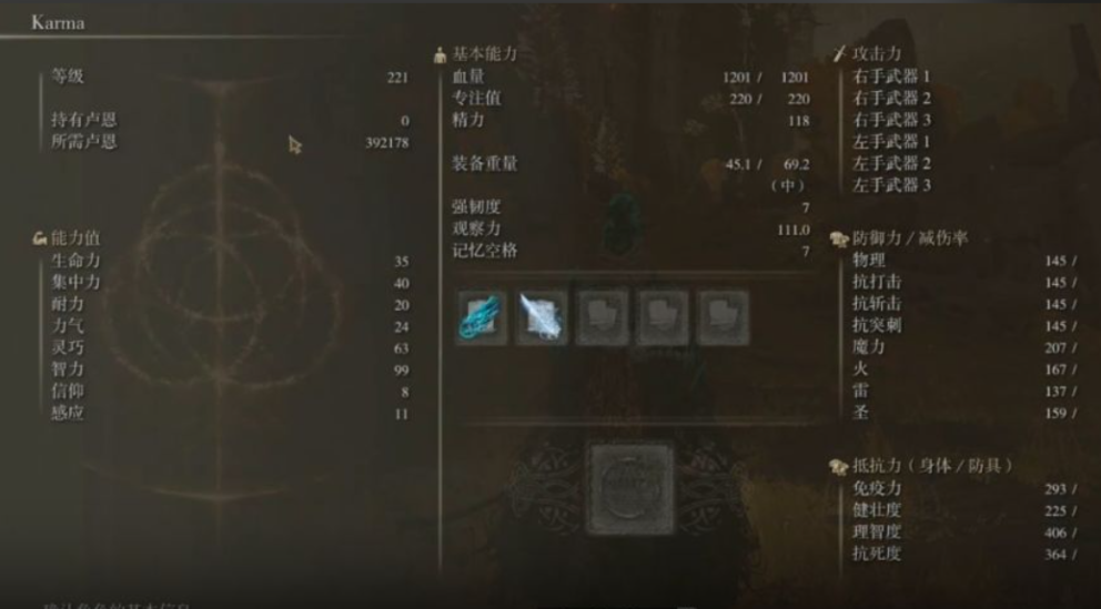 进入四周目后,玩家应优先巩固核心属性,例如主武器所需的力敏或智信加成,同时保证生命值不低于40点以应对高伤害场景。精力值建议维持在30点以上,确保连续闪避和攻击的流畅性。若使用法术流派,专注值需达到35点以上以支持高阶魔法连发。感应属性在四周目的价值相对有限,除非特定流派需要触发异常状态,否则不建议过度投入。