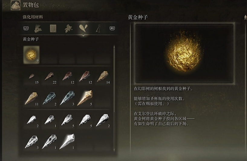 拿到基础装备后,建议优先探索宁姆格福西部地区。这片区域敌人强度适中,适合练级和收集材料。重点留意发出金光的小树,调查能获得黄金种子,用来升级圣杯瓶次数。法师前期比较脆弱,建议先把生命值加到20左右,智力加到18这样能使用陨石杖和基础法术。防具可以选择旅行者套装,重量轻且提供基础防御,在贤者镇废墟就能捡到。