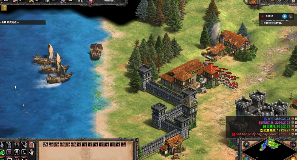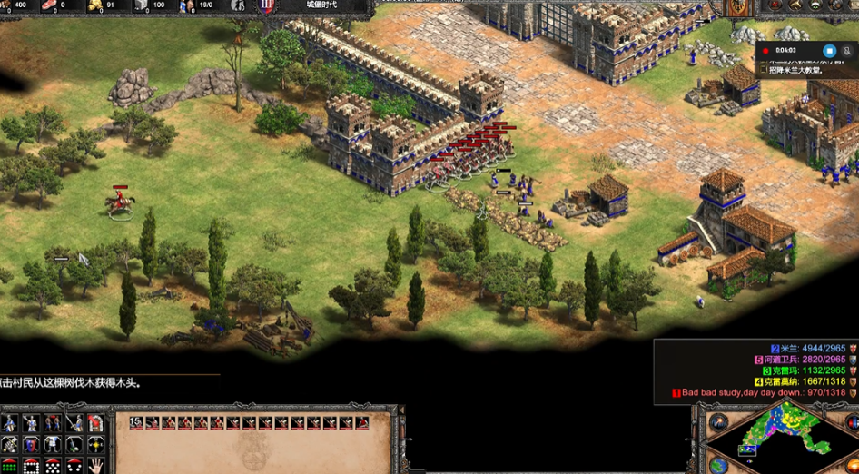 开局后的首要任务是迅速集结和准备。不要让你初始的部队和农民散开或发起盲目的攻击,而是应该立刻将所有农民拉出来建造房屋,将人口上限提升到55左右,以确保有足够的人口空间容纳必要的军事单位。你的主力战斗部队——游侠和条顿武士应该直接向地图最南端移动,目标直指撒拉逊人建立的城墙。在这个过程中如果遭遇小股敌人,尽量不要恋战,你的核心目标是尽快抵达城墙边并打开突破口。