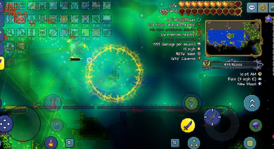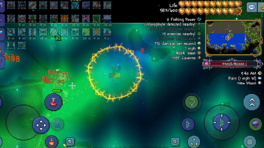 挑战猪鲨公爵,极高的机动性优先级最高,装备组合通常围绕翅膀、闪电靴或克苏鲁护盾等增加闪避能力的饰品构建,武器方面则推荐射速快或具有追踪能力的远程武器,例如战术散弹枪搭配叶绿弹。为了规避其狂暴,战斗必须在海洋环境进行,许多玩家会选择搭建多层平台甚至菱形矿车轨道来获得移动优势。而对于世纪之花,虽然机动性同样重要,但战斗的成败更大程度上依赖于战前对场地的改造。玩家需要提前在地下丛林挖掘出一个巨大的空旷区域,甚至铺设平台并放置心灯、篝火等提供恢复的设施。武器选择上,具有穿墙能力或范围伤害的武器效果显著,如死神镰刀、巨兽鲨机枪配合魔晶弹或叶绿箭。使用灵液等降低防御的减益手段也能有效降低战斗难度。