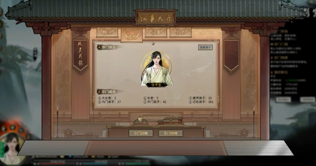 上任初期,稳固权力基础是关键,建议在议事大厅设置防止系统自动调整成员调度,并在任务大厅关闭任务自动分配功能,转而进行精细化的手动管理,这能显著提高效率并控制弟子损耗。人员管理上,前期应快速扩充弟子数量,中期则需根据宗门记事本的提示,均衡分配弟子到招贤堂、巡查堂、贮宝堂和外务堂等各堂口,以兼顾人口增长、安定度、资源获取与名誉提升。资源运营方面,需要占据领地内的资源点以获得稳定收入,并合理建设与升级如灵阁、藏经阁等宗门设施。
