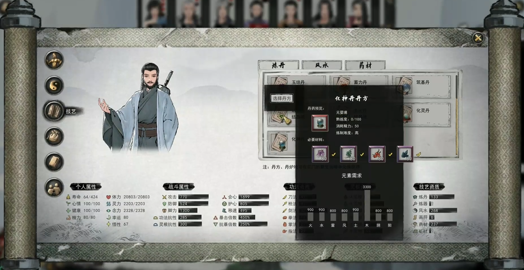 材料准备齐全后,炼制过程同样至关重要。建议准备一个高级丹炉,例如前往宗门使用奉献度进行兑换,因为低级丹炉容易发生炸丹导致材料损毁。开始炼制前,务必进行游戏存档,然后将材料按丹方投入丹炉。炼丹的成功率与角色的丹药资质相关,资质过低会难以炼制出高品质丹药,可以通过击杀各地出现的丹魔来获取提升资质的丹药书。利用存档与读档机制反复尝试,是获得一品化神丹的实用技巧。