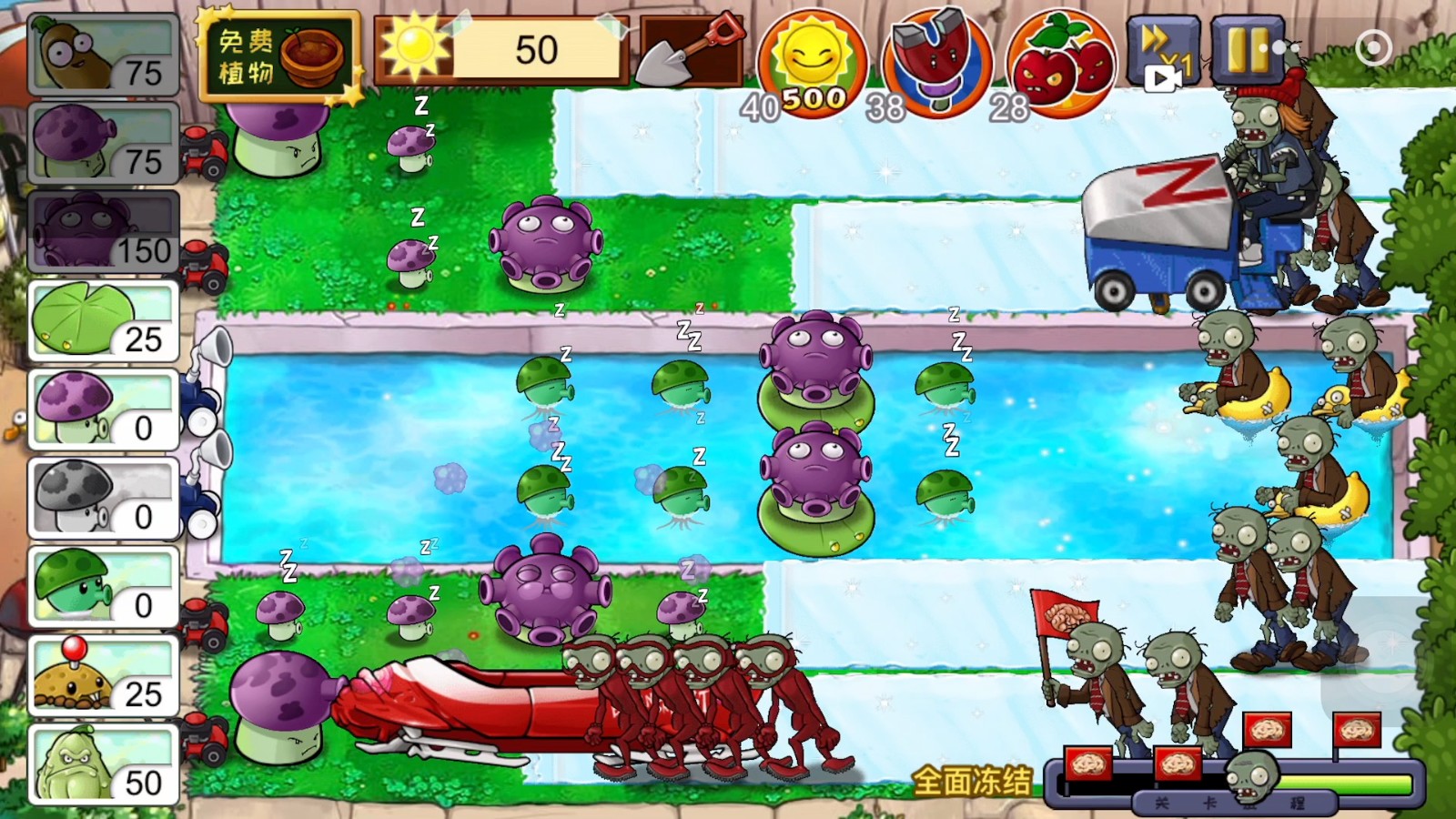 植物僵尸兼具僵尸的移动啃食能力与植物的攻击特性,会主动发射豌豆、投掷西瓜等攻击己方植物,威胁远大于普通僵尸。开局优先在场地左侧种植两列向日葵,快速积累阳光,为后续布防奠定经济基础。前排种植高坚果,其厚实血量可阻挡植物僵尸推进,还能免疫撑杆跳僵尸的跨越,避免植物僵尸直接突破防线攻击后排。面对多线路植物僵尸,可在关键线路种植大蒜,强制改变其行进路线,将多股僵尸集中至单一线路,方便集中火力打击。